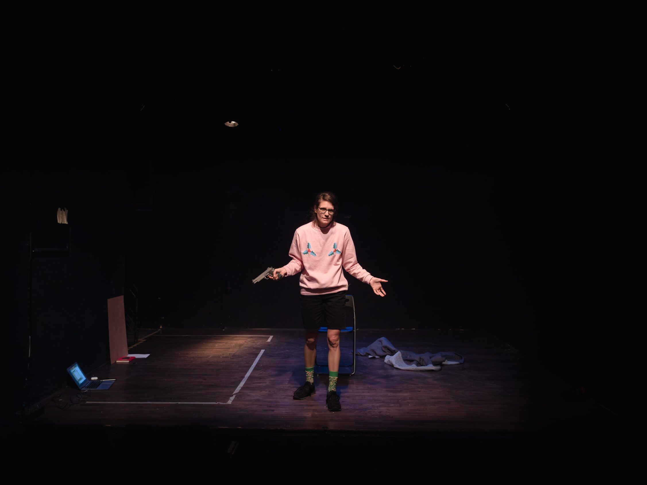 Autorski projekt dramaturginje i spisateljice Jasne Žmak u kojemu se bavi svojim odnosom prema umjetničkom polju preispitujući vlastite i tuđe autorske pozicije te odgovornost i anksioznost koje one impliciraju. Iako naizgled nepovezane, teme tinitusa i patrijarhata postaju centralne okosnice ove predstave koja operira na granici stand-upa i izvedbenog predavanja.